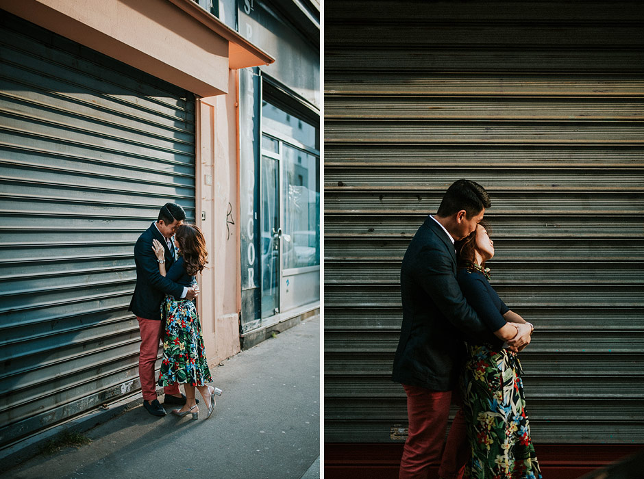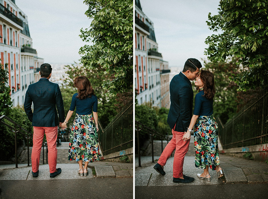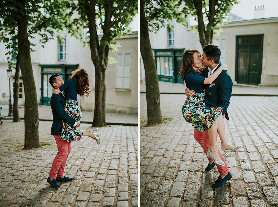 engagement photo parismontmartreasian couple parisAmelie cafeengagement montmartreparis street artparis coupleparis wedding photographermontmartre wedding