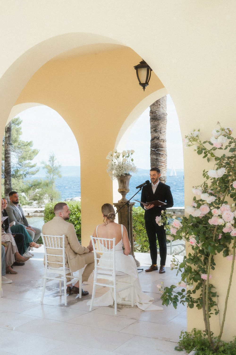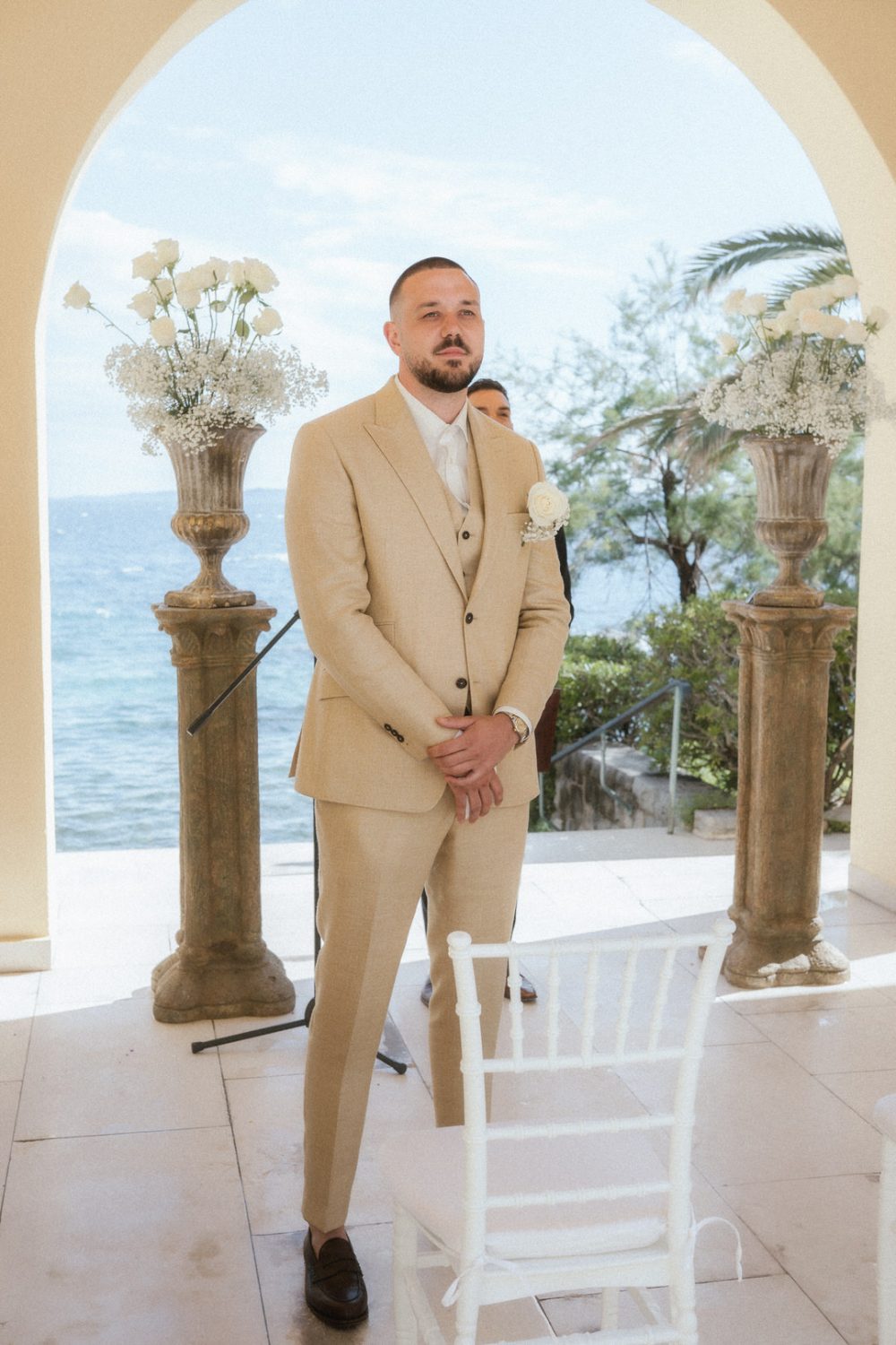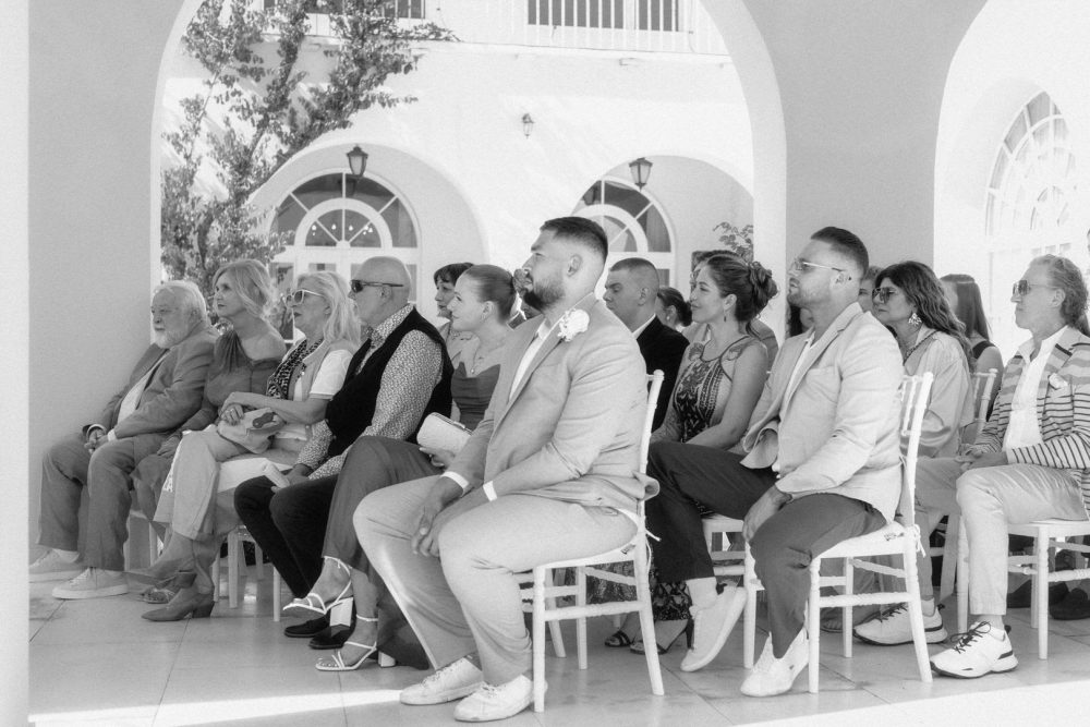 This wedding was all about simplicity and connection. Guests sat close, the light was soft, and the natural colors of the villa blended seamlessly with the surroundings. Villa Dalmatia doesn’t need much styling — the architecture, coastline, and atmosphere do most of the work, which keeps the day feeling relaxed and genuine.
