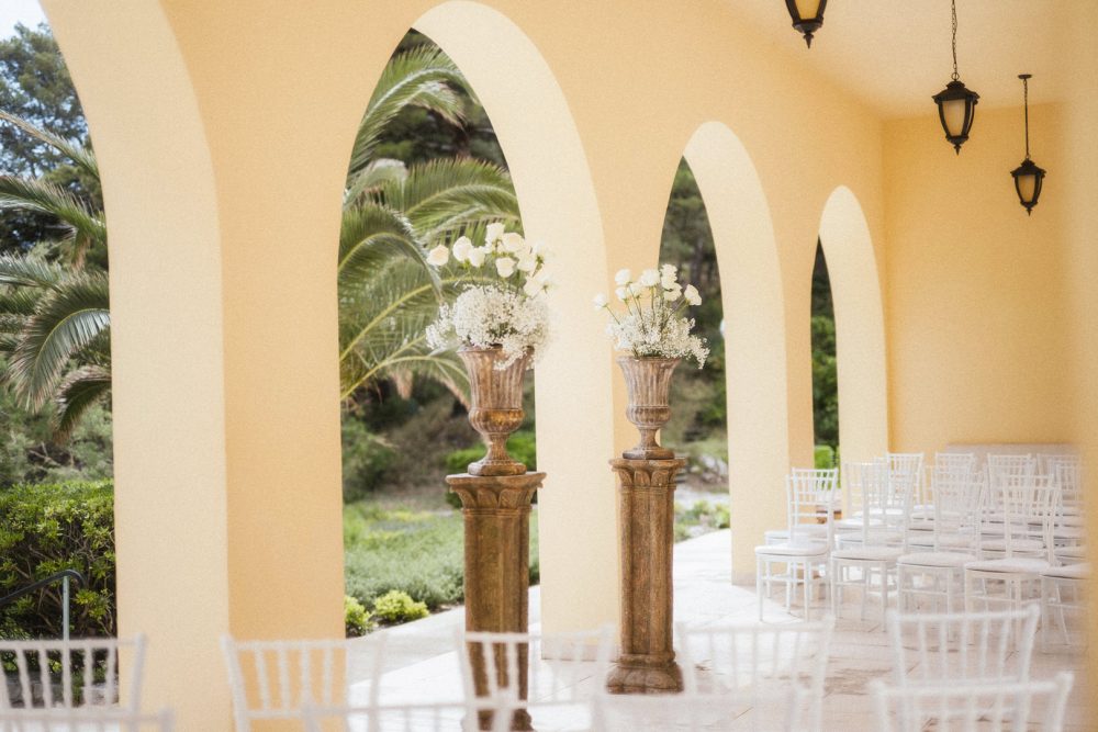 Villa Dalmatia Split is one of those venues that instantly slows everything down. Tucked under Marjan Hill and opening straight toward the Adriatic, it feels calm, private, and effortlessly beautiful. The ceremony space framed by arches and sea views makes it a perfect choice for couples planning a destination wedding in Split, Croatia.